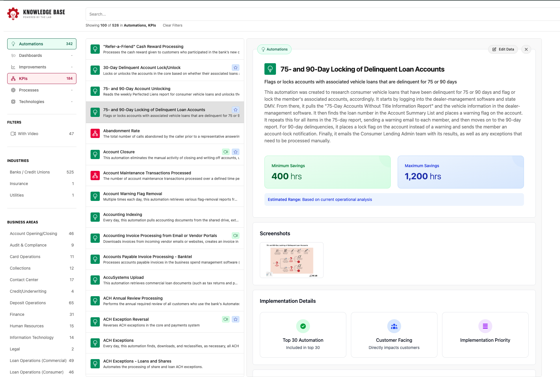 The Lab's Intellectual Property Knowledge Base contains industry-specific assets.