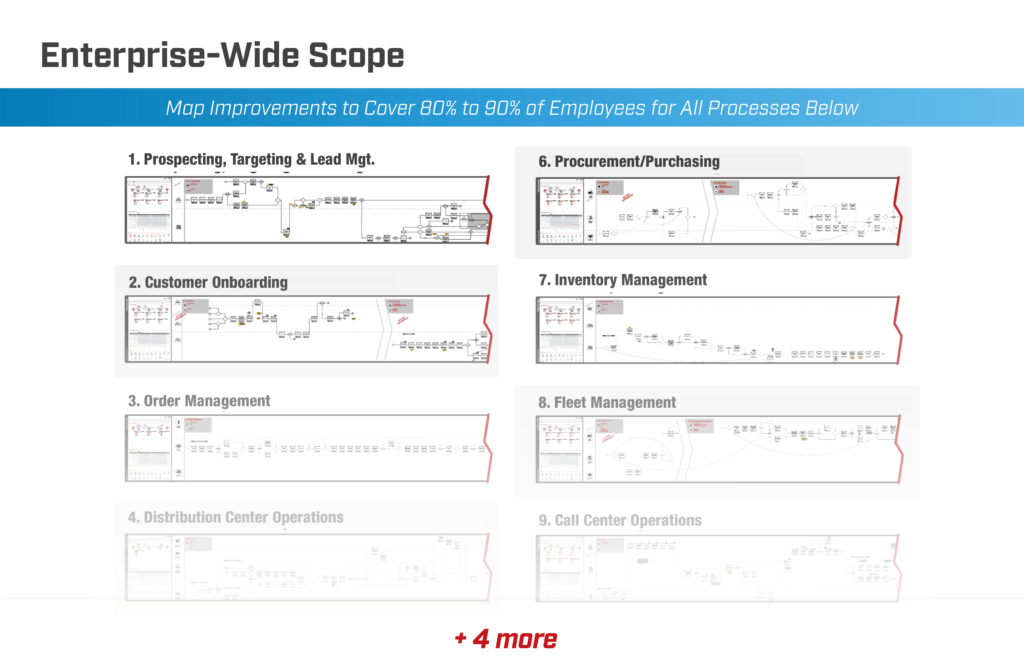 As part of a large-scale process-improvement initiative—or during an M&A event or bringing in new major systems—the biggest 3PL and 4PL operators in North America typically turn to outside consulting firms for process mapping. Despite their size, they generally lack a mature internal team that can devote itself to E2E organization-wide process mapping.