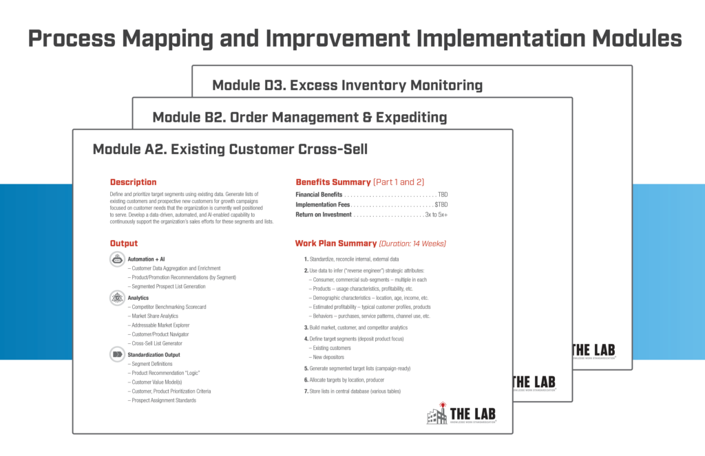 Note, too, that The Lab designed our process-mapping approach so you don’t have to “shut down your 3PL/4PL business to map that business.” For the duration of the engagement, we’ll only need one to two hours per week, per SME. We know your organization is working nonstop at full throttle; we do our best to avoid slowing down your team.